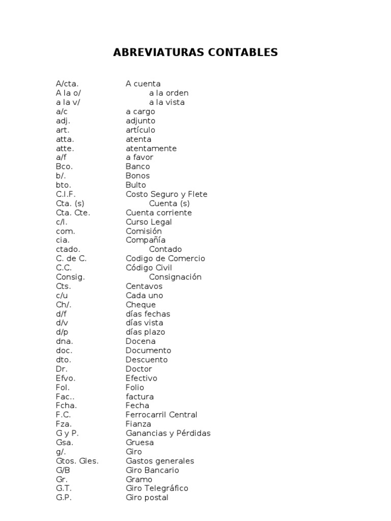 Contabilidad abreviaturas .