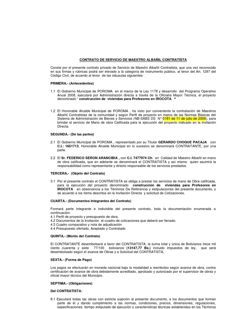 Contratos De Obra Contratos Modelos De Contratos ... .