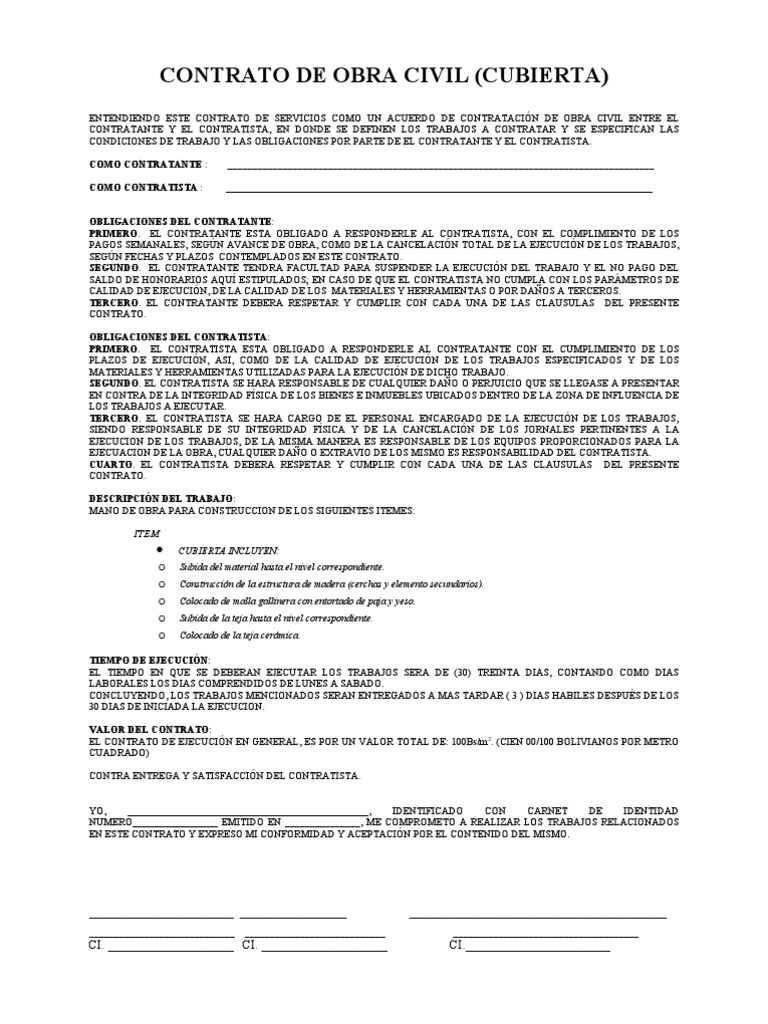 Contrato de obras civiles construccion .
