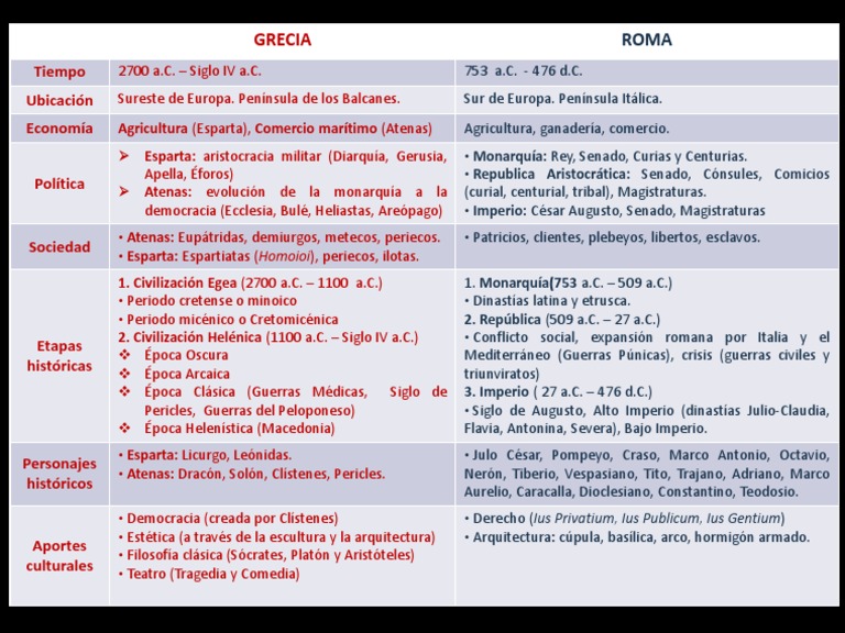 Cuadro comparativo entre la cultura Griega y Romana ... .