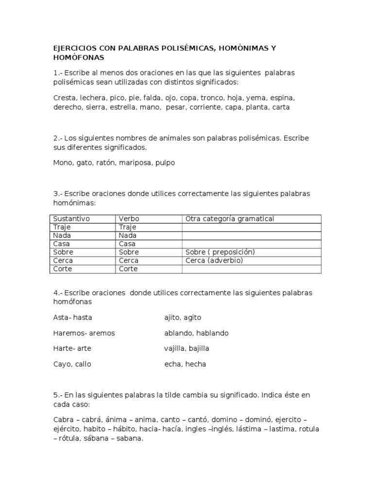 Ejercicios Palabras Polisemicas Pdf