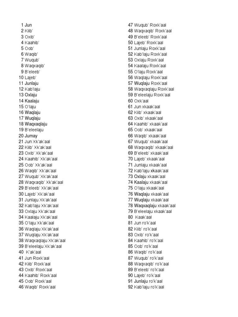 Numeros en Q'eqchi' .