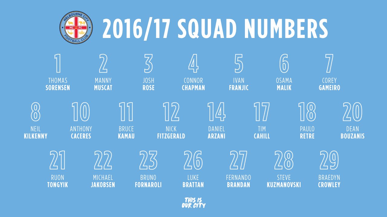 2016/17 Squad Numbers - Melbourne City - Melbourne Football .
