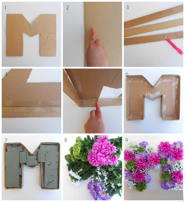 Diy: Letras de cartón con flores | Mislaboresypunto .