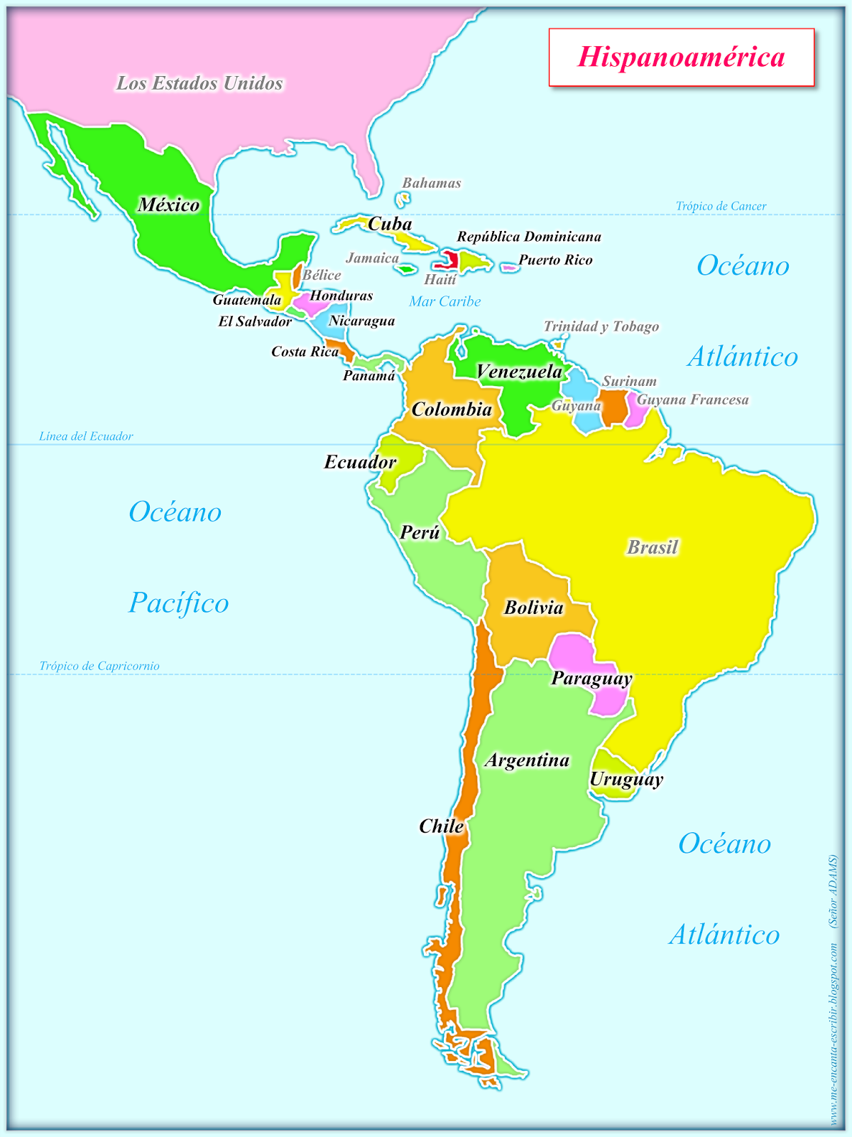 Me encanta escribir en español: Mapa de Hispanoamérica .