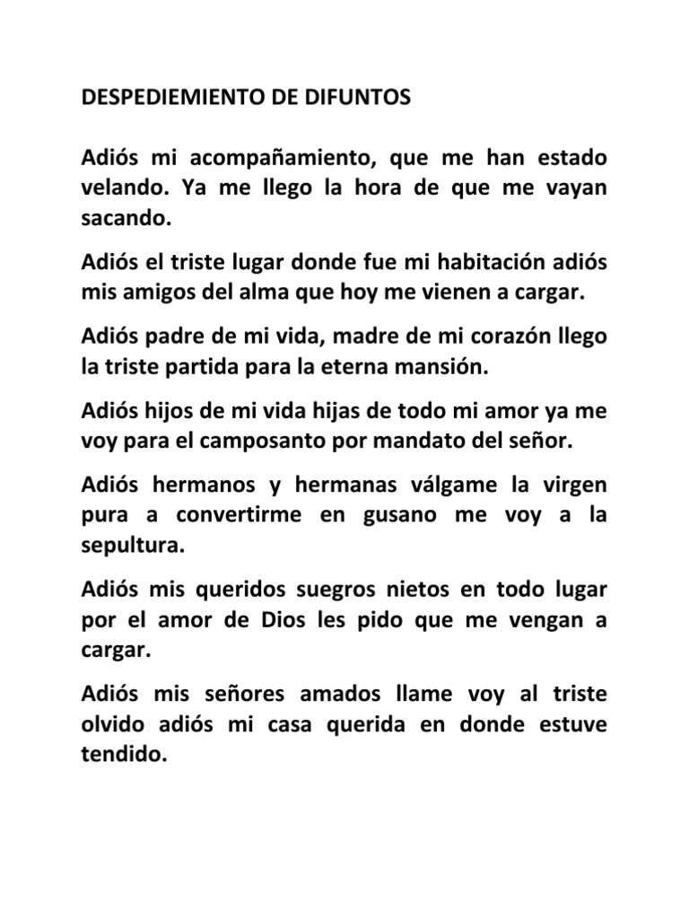 Oracion De Despedida Para Difuntos