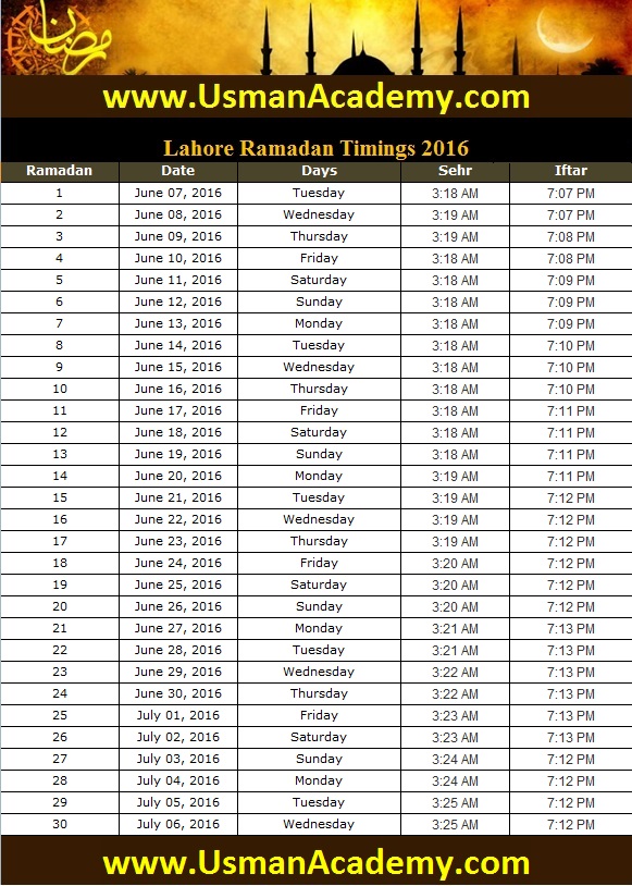 Ramadan Calendar Sehri Iftar Lahore Timings 2018 Ramazan ... .