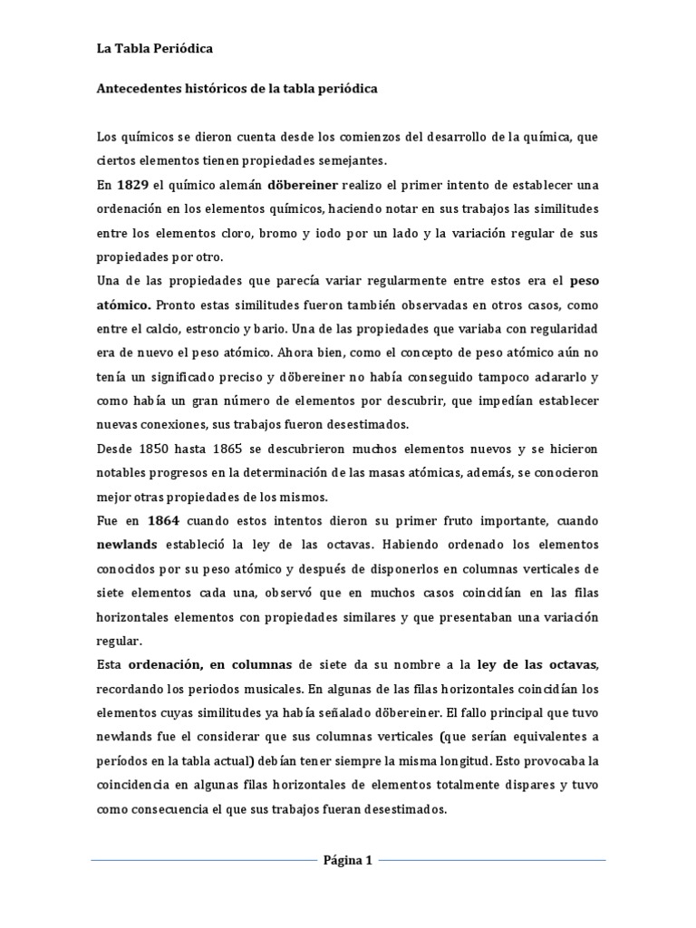 Historia De La Tabla Periodica De Los Elementos Quimicos ... .