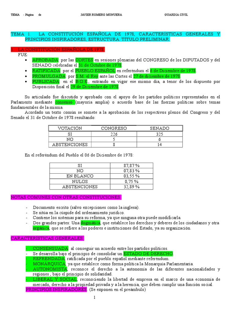 [TEMARIO OPOSICIONES] Resumen constitución española .