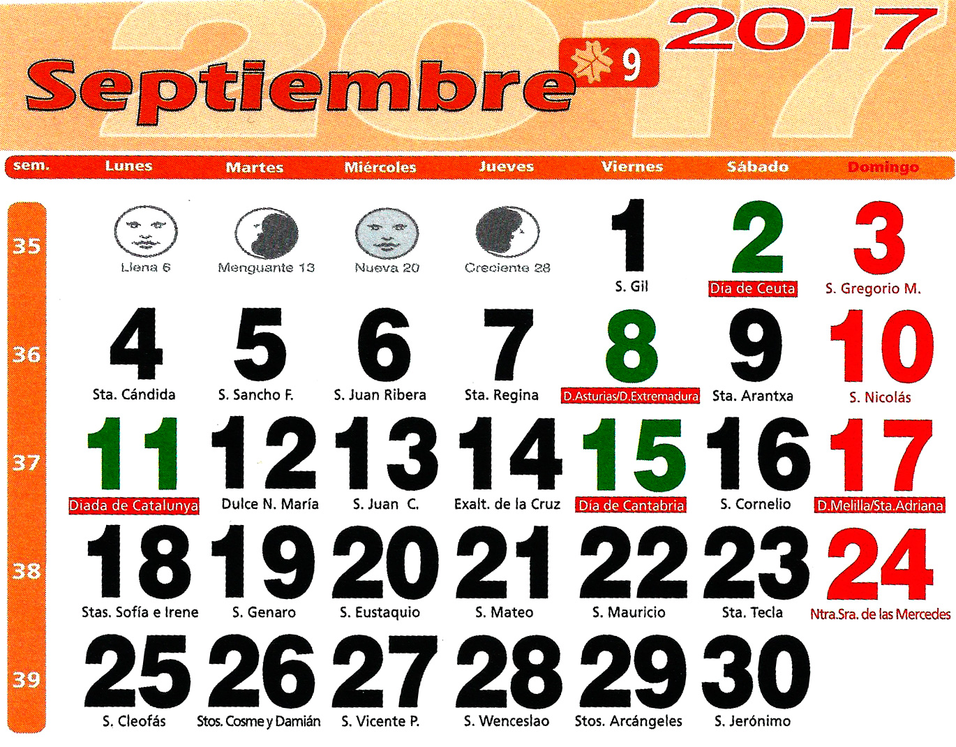 Calendario septiembre 2017 .