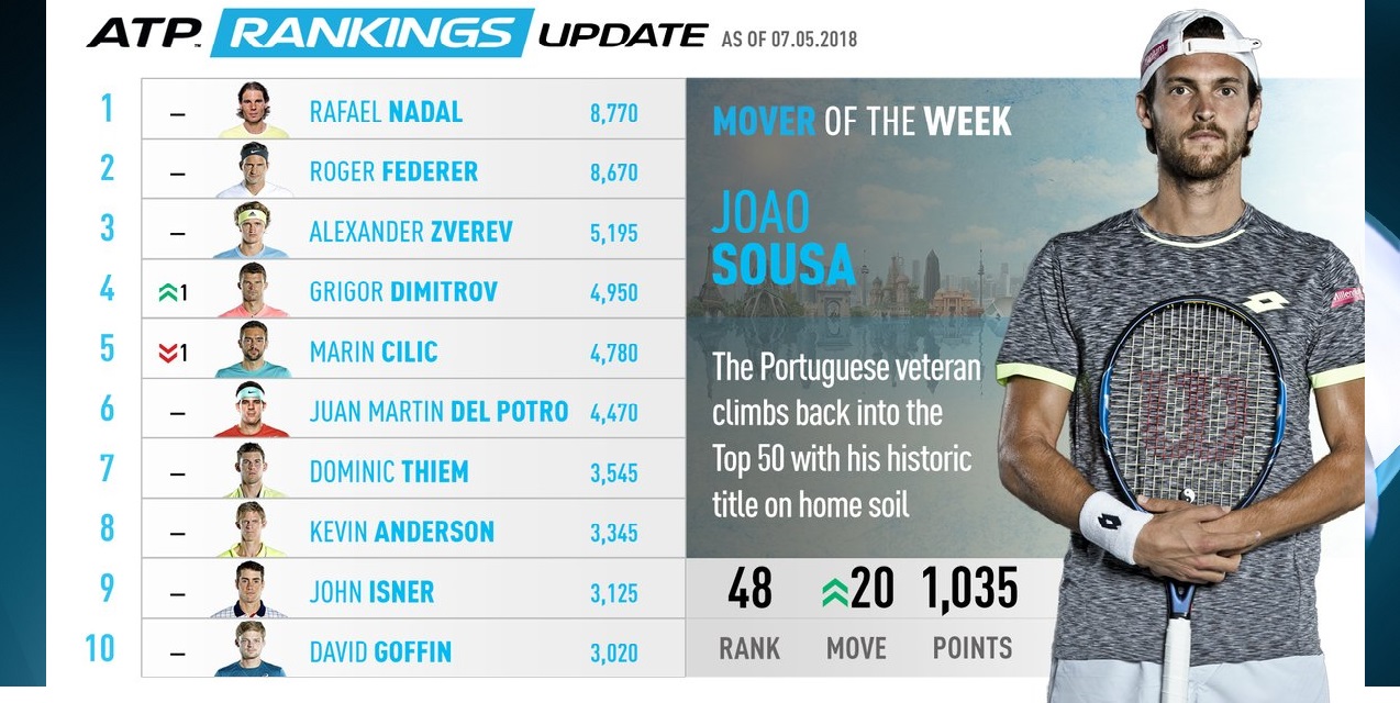 andatenis: Ranking ATP actualizado al día 7 de mayo de 2018 .