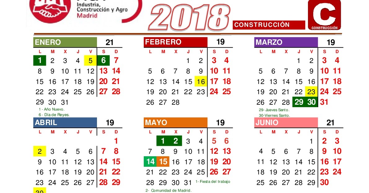 Calendario Laboral 2018 Manufacturing « CGT IVECO MADRID .