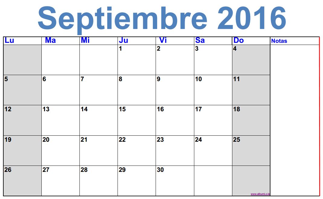 Calendario de septiembre 2016 para imprimir | calendars ... .