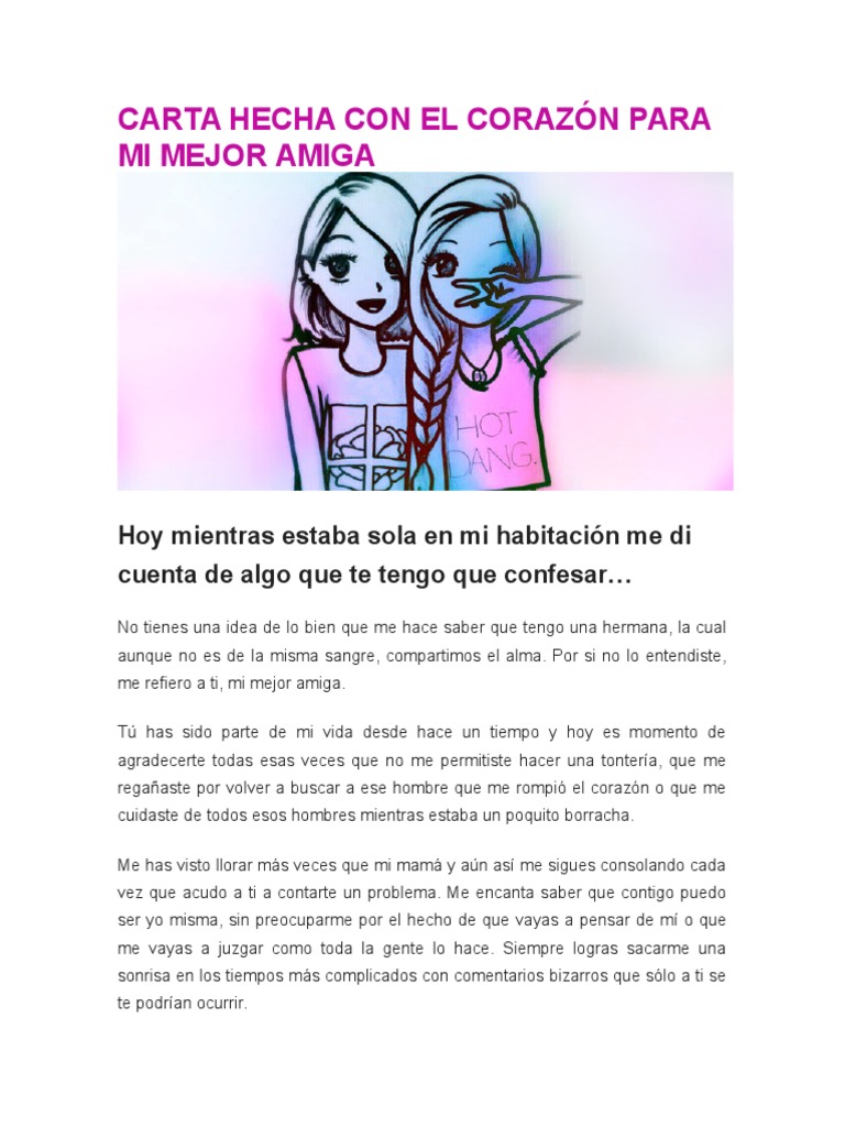 Carta hecha con el corazón para mi mejor amiga | Para mi ... .
