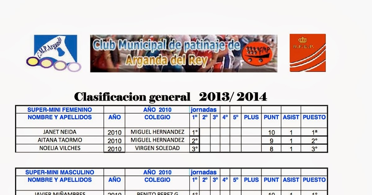 AMPA CEIP SAN JUAN BAUTISTA ARGANDA DEL REY: CLASIFICACIÓN ... .