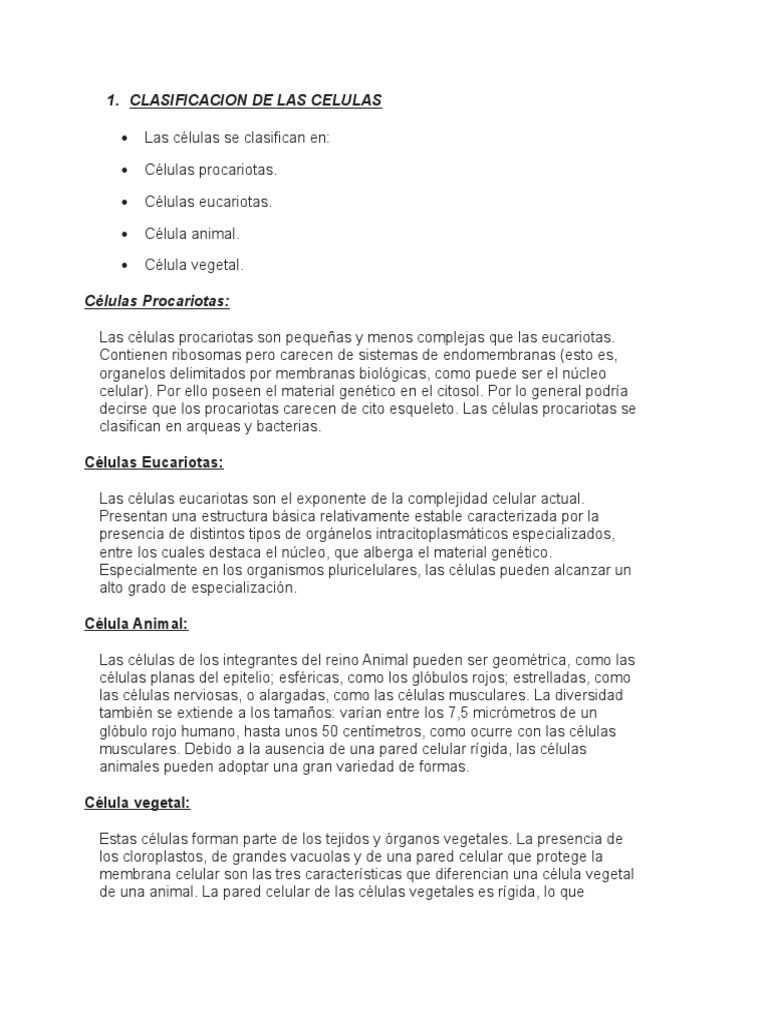 LA CLASIFICACIÓN DE LAS CÉLULAS | PurasTareas.com .
