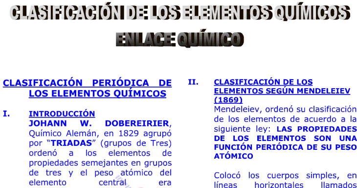 Clasificación de los Elementos Quimicos .