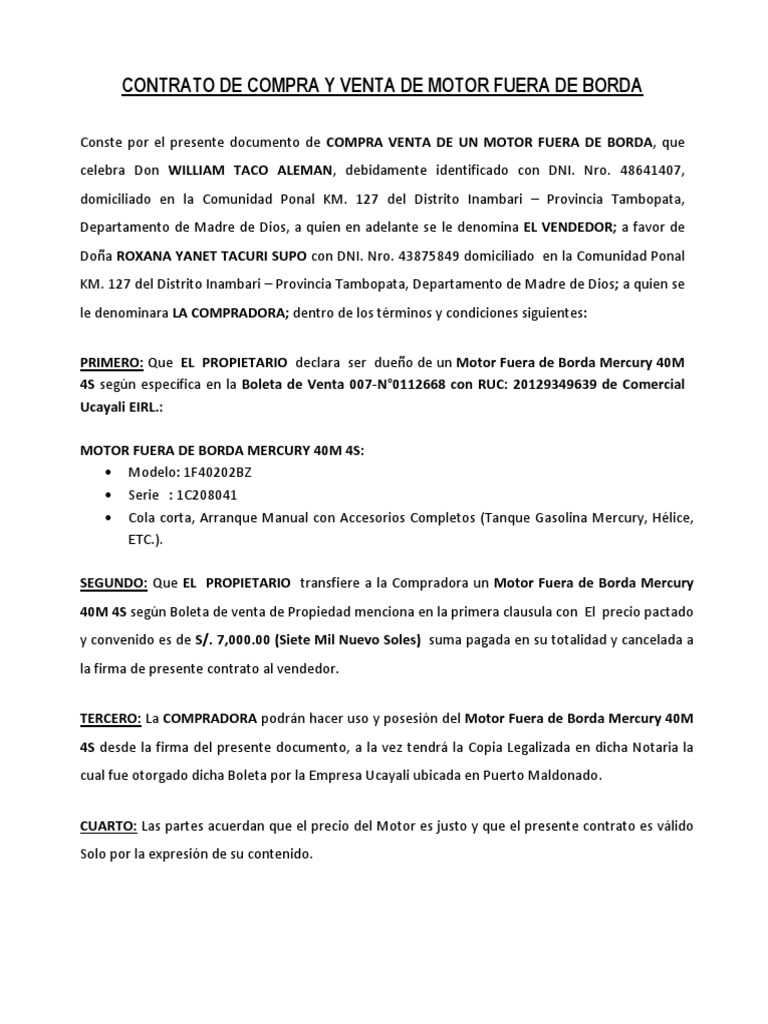 Contrato de Compra y Venta de Transferencia de Motor Fuera ... .