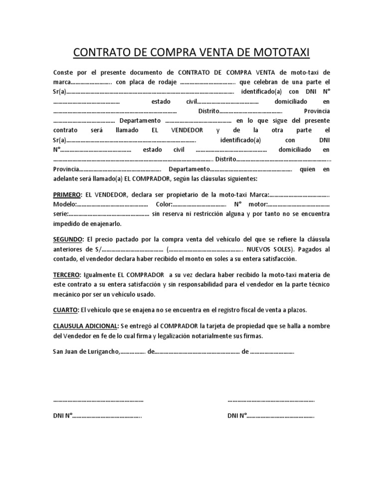 Contrato de Compra Venta de Mototaxi .