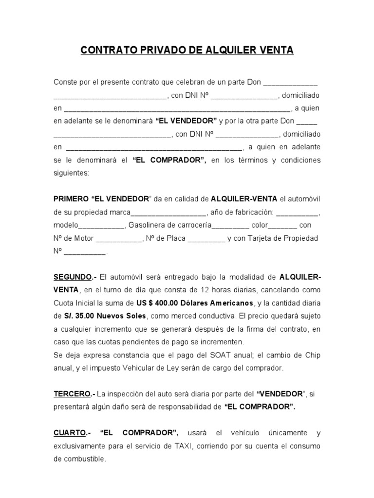 Contrato Privado de Alquiler Venta .