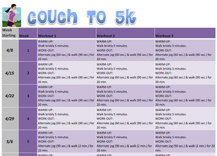 Nhs Couch To 5k Chart - Couch to k training plan nhs for ... .