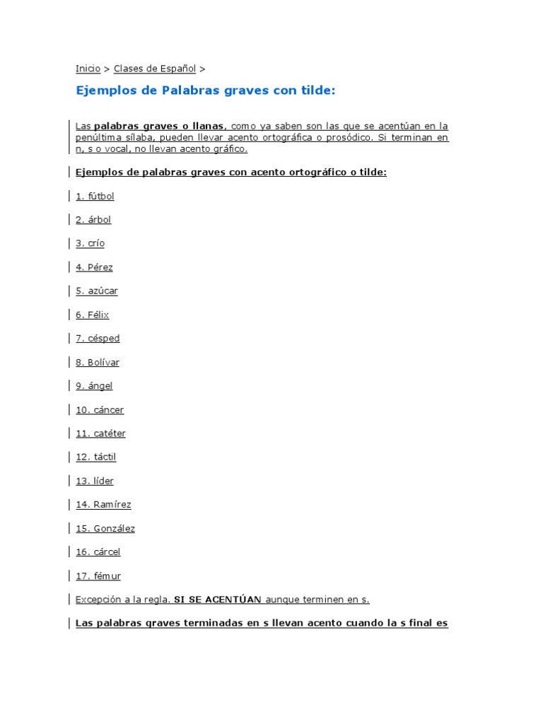 100 Ejemplos de Palabras Graves con Tilde .