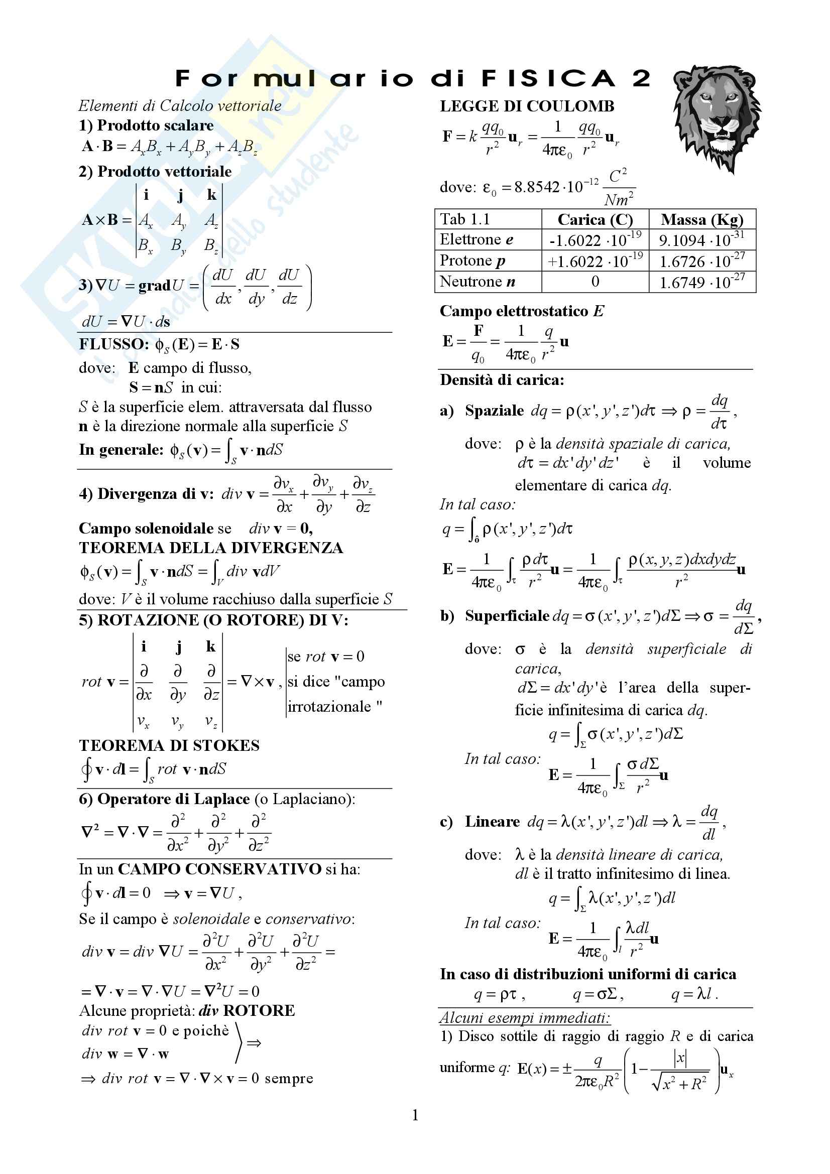 Fisica generale II - Formulario .