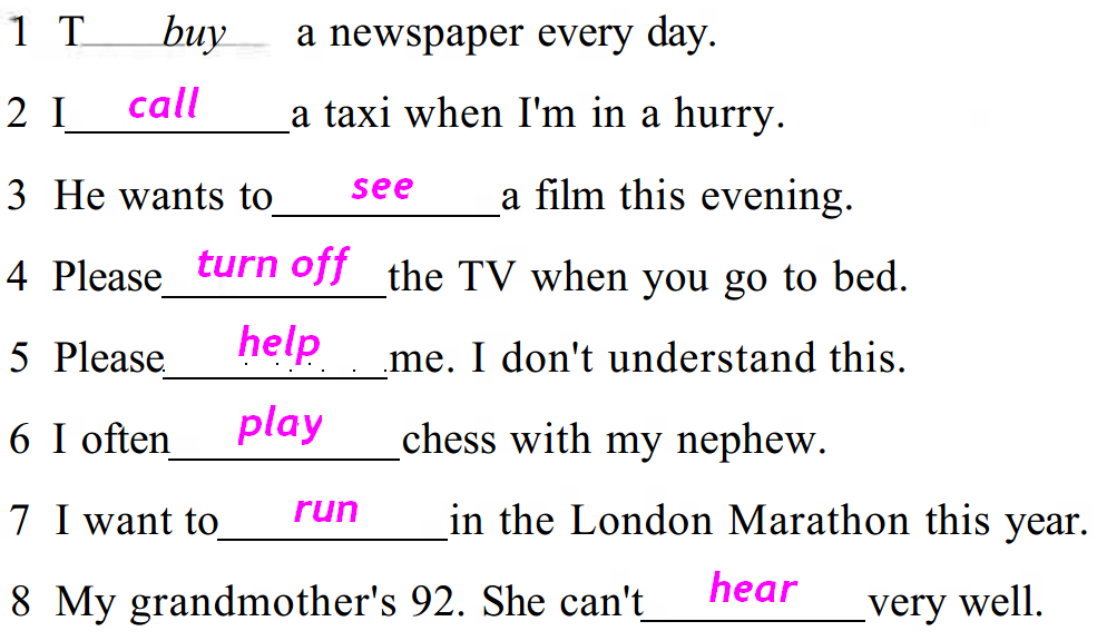 Modelos de ejercicios de inglés .