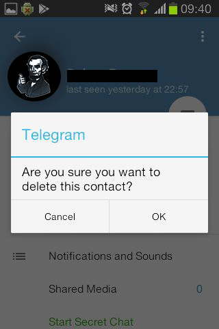 JP: Eliminar un contacto en Telegram .