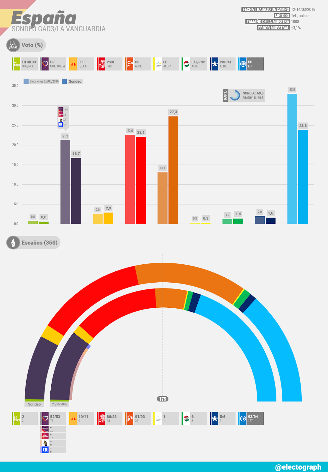 ESPAÑA Elecciones generales Sondeo GAD3 para La Vanguardia ... .