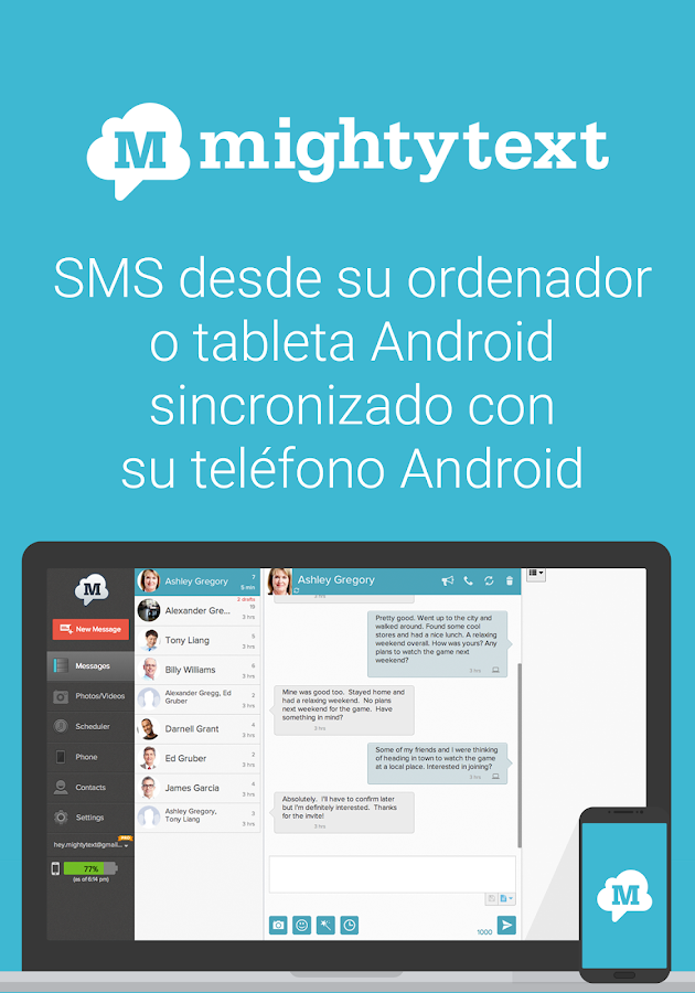 Envía y Recibe Mensajes SMS Desde Tu Ordenador con MightyText .