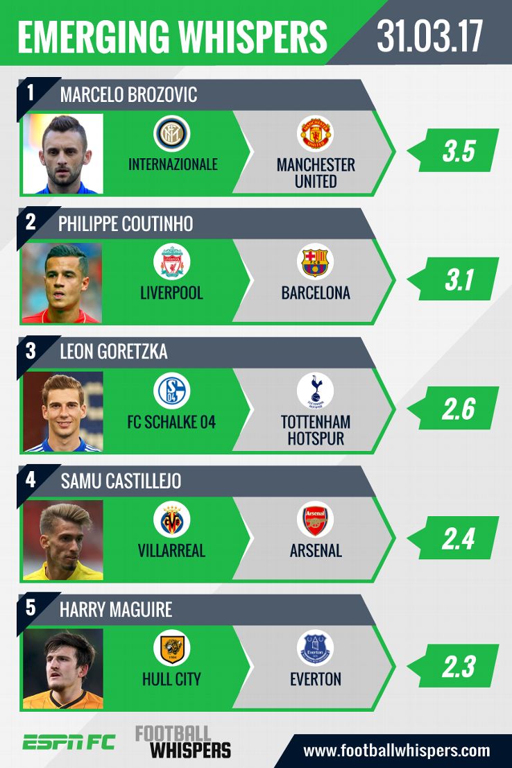 Transfer Rater Marcelo Brozovic to Man United Coutinho to ... .