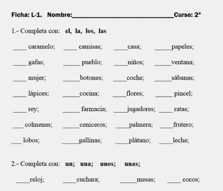 Fichas de lengua segundo primaria .