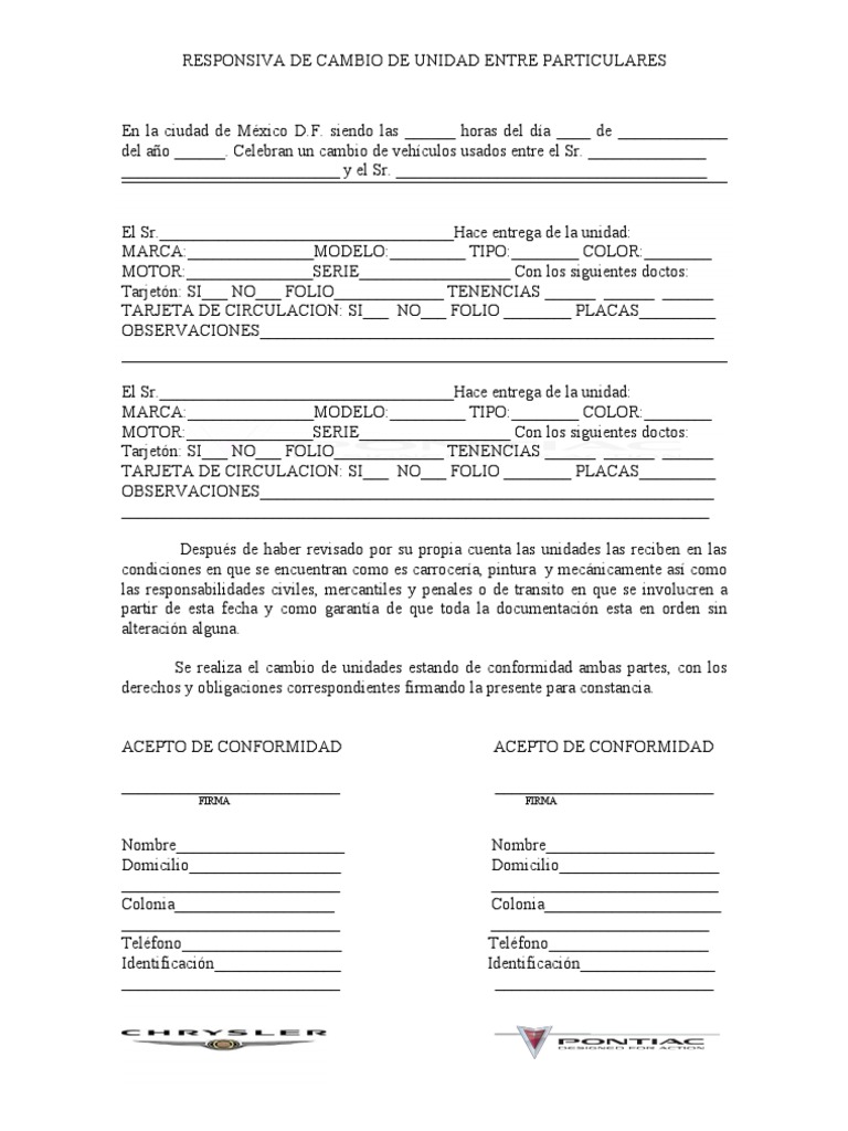 Carta Responsiva Compra Venta Automovil Pdf To Excel ... .