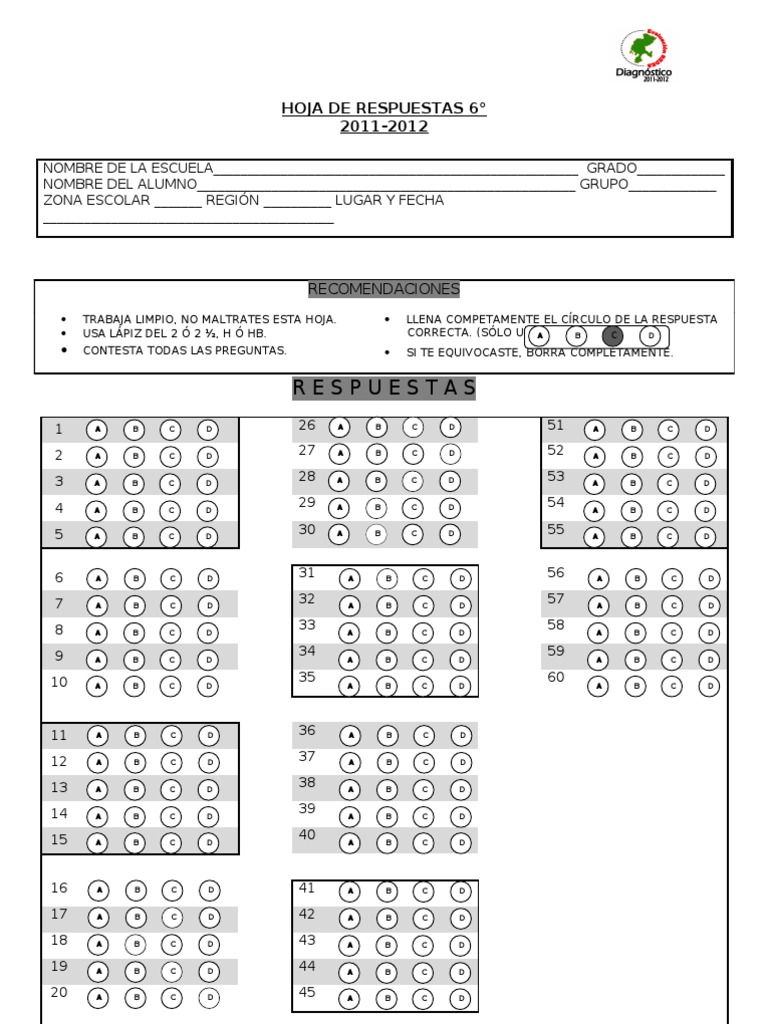 Hoja de respuestas 6° en blanco .