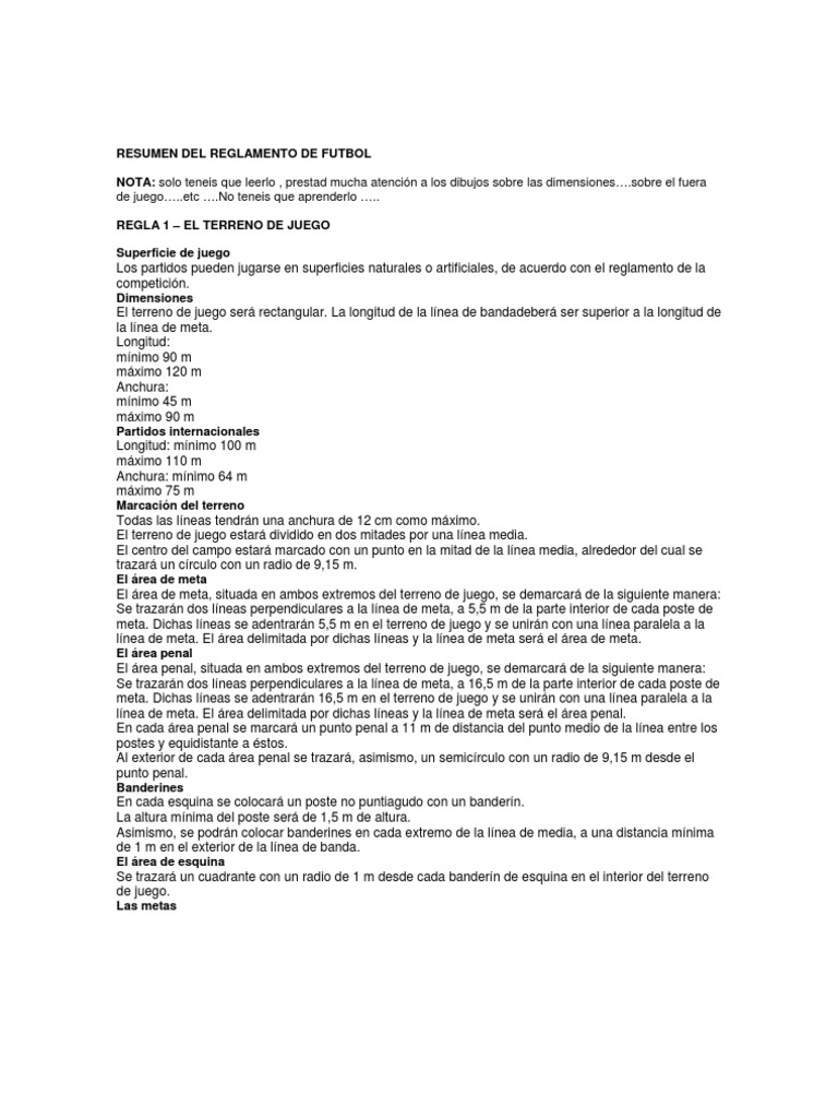 Resumen Reglas de Futbol .