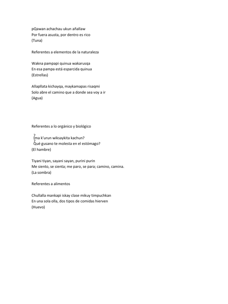 Adivinanzas en Lengua Indigena .