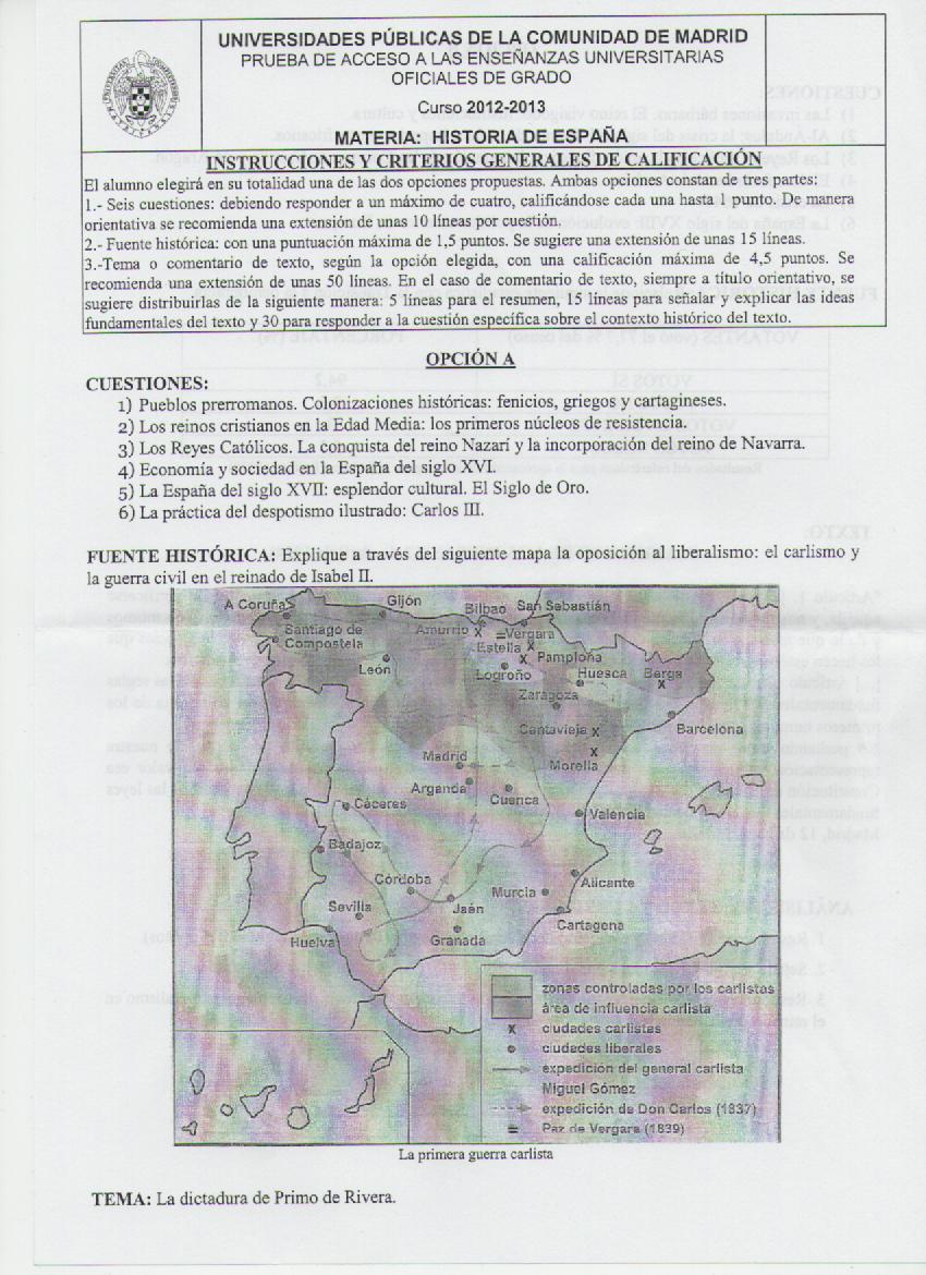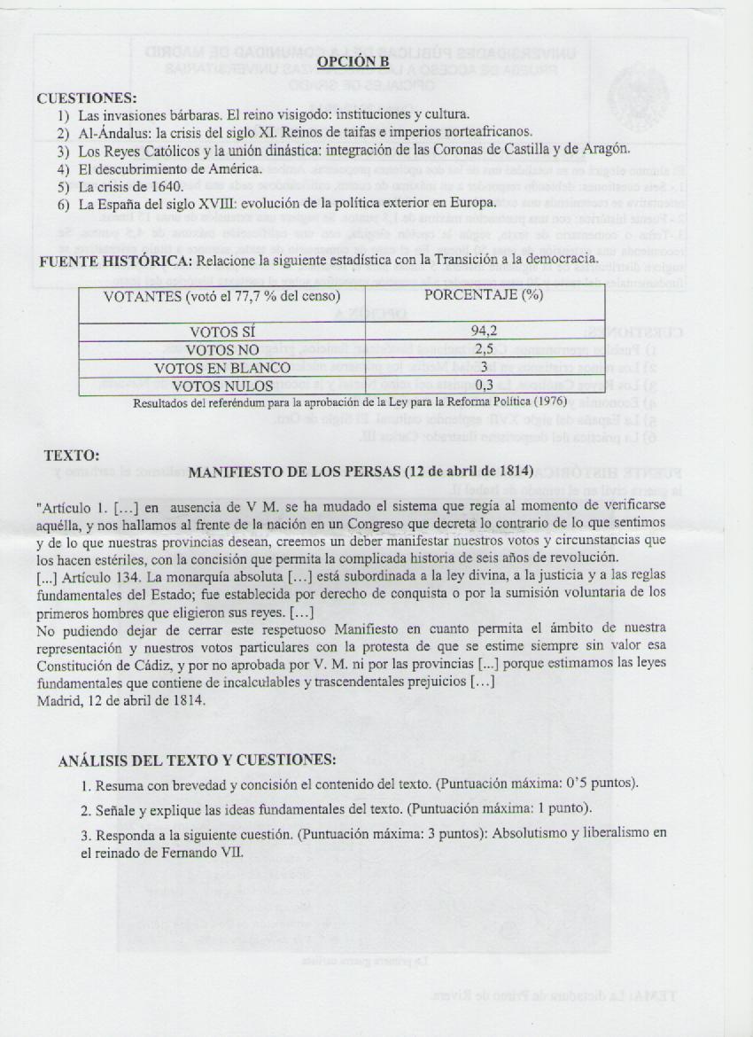 EXAMEN SELECTIVIDAD. HISTORIA DE ESPAÑA .