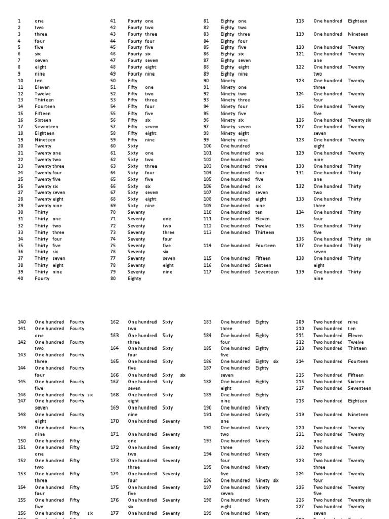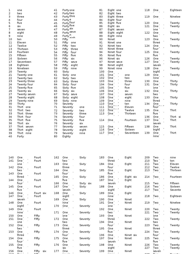 Numeros Ingles Del 1 Al 1000 .
