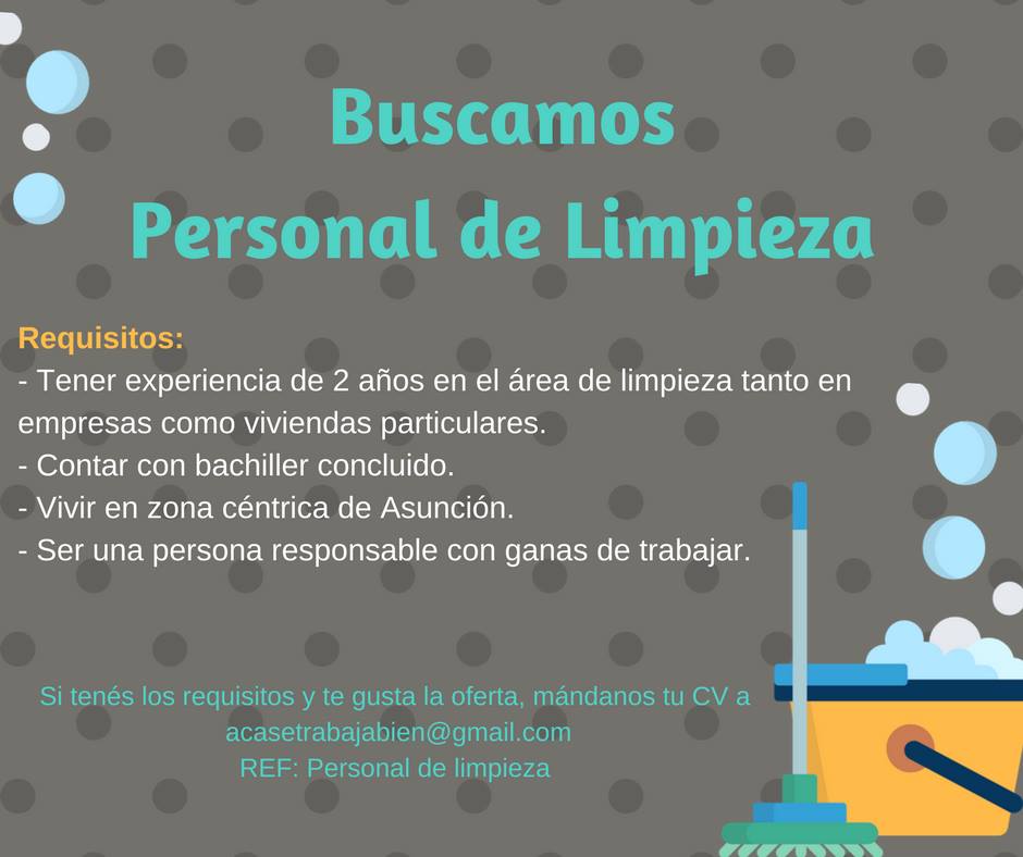 PERSONAL DE LIMPIEZA | ???? BOLSA DE TRABAJO PARAGUAY EMPLEOS .