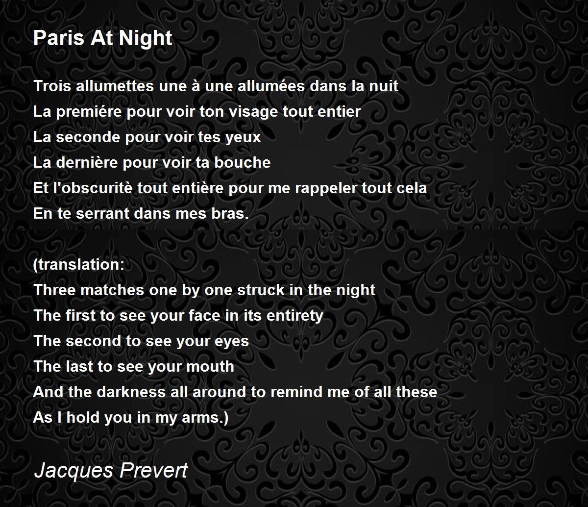 Paris At Night Poem by Jacques Prevert - Poem Hunter .