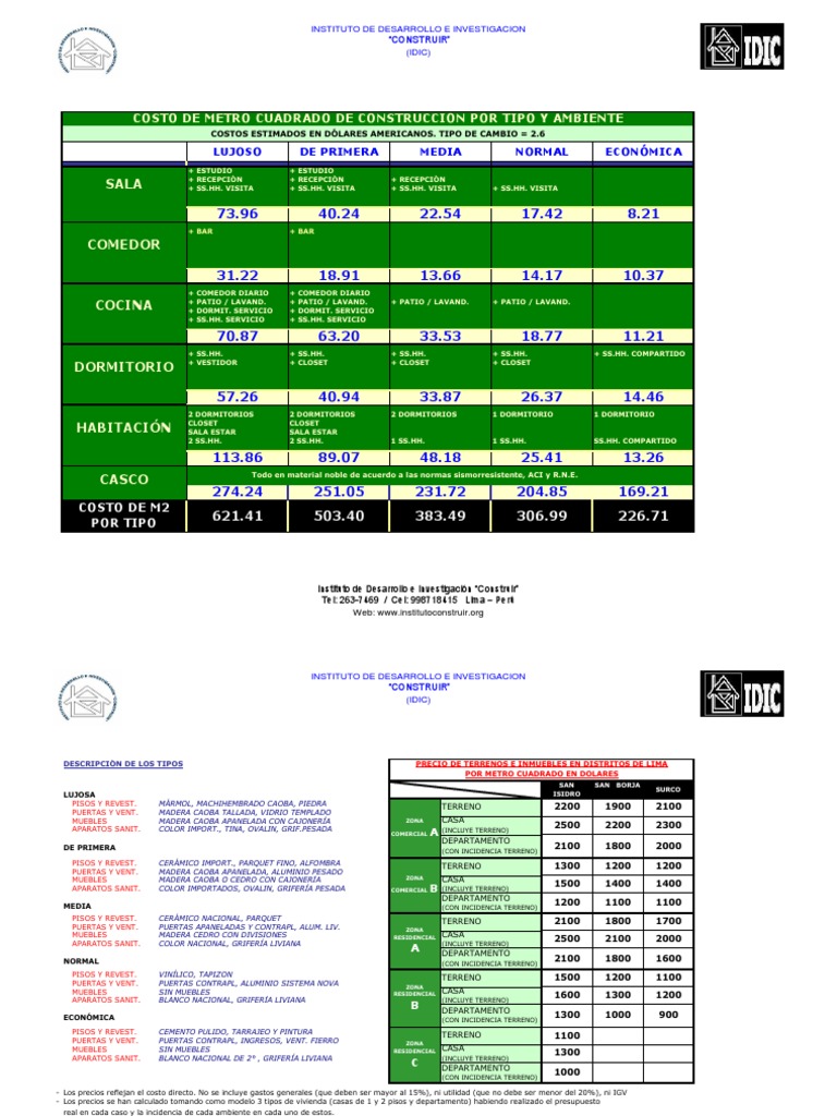 Tabla Construccion Lima Por Metro Cuadrado | conoce la ... .