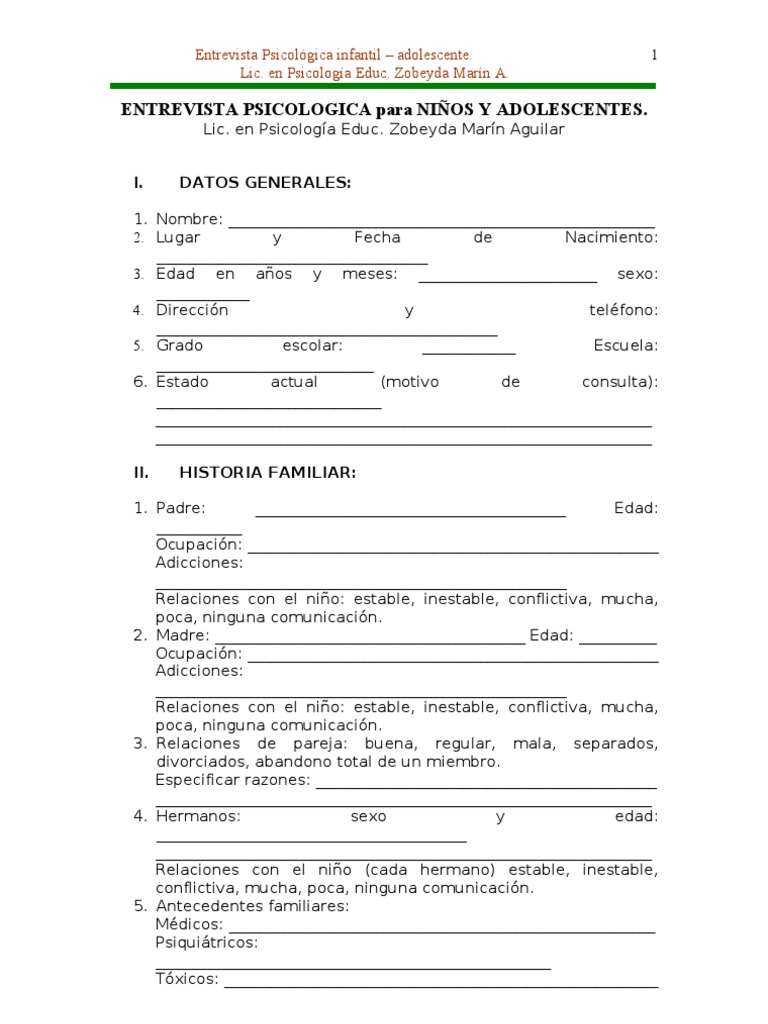 ENTREVISTA PSICOLOGICA para NIÑOS Y ADOLESCENTES .