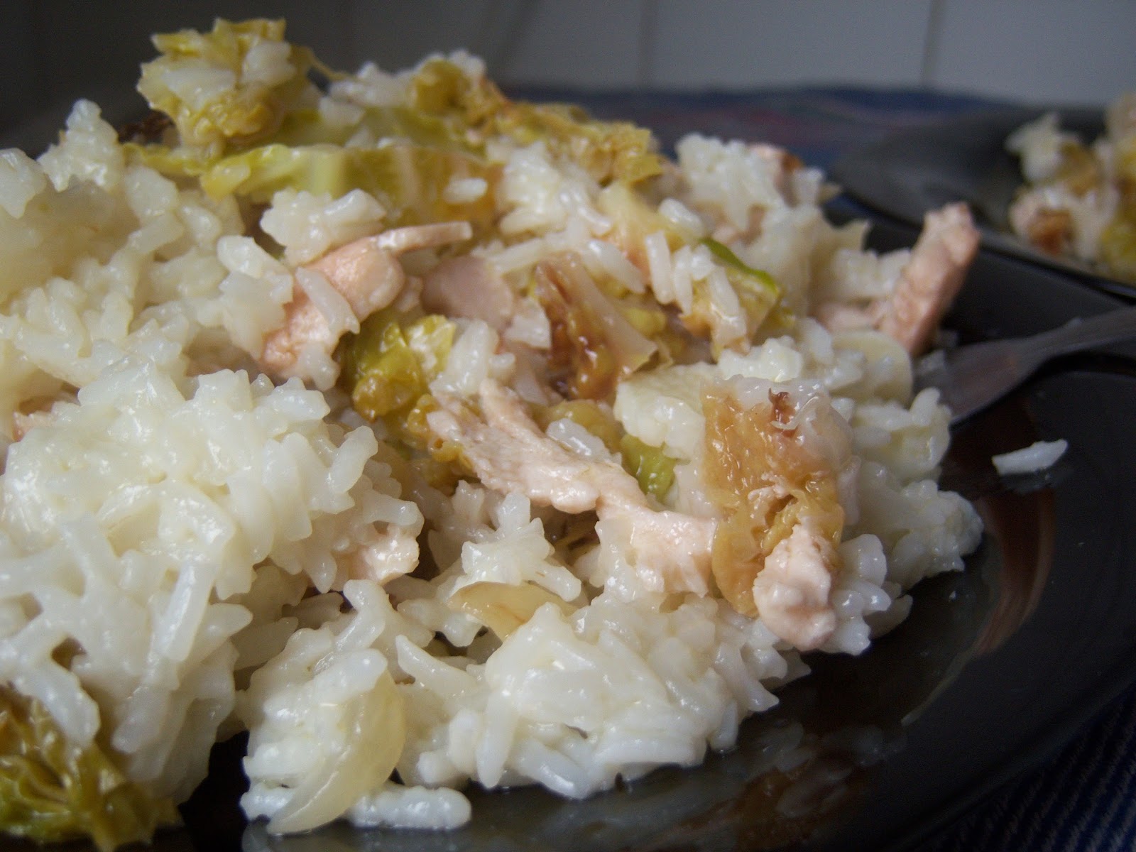 Receta: Arroz blanco redondo con pollo y repollo .