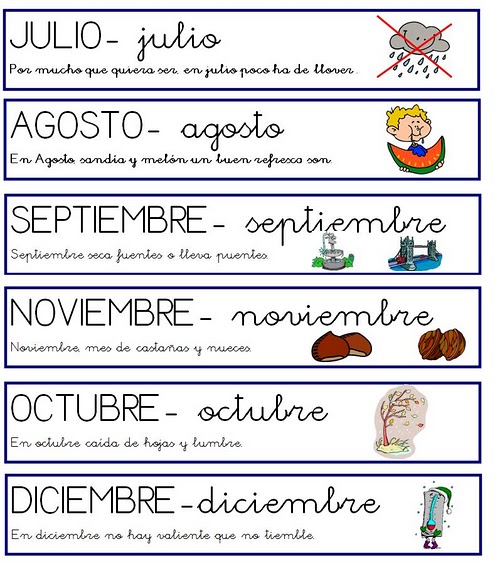 CARTELES Y MENSAJITOS: Rima de los meses del año .