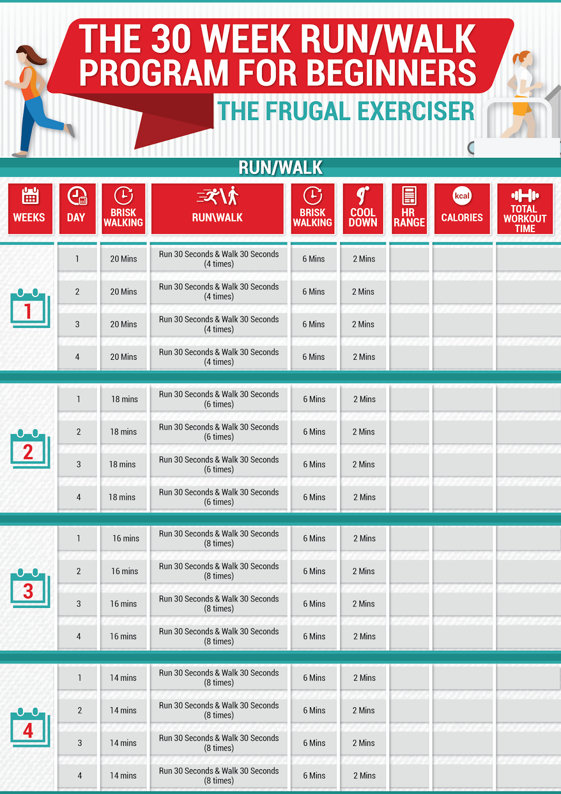 30 Day Beginner’s Running Challenge Calendar .