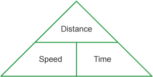 A formula triangle involving distance, time, and speed ... .