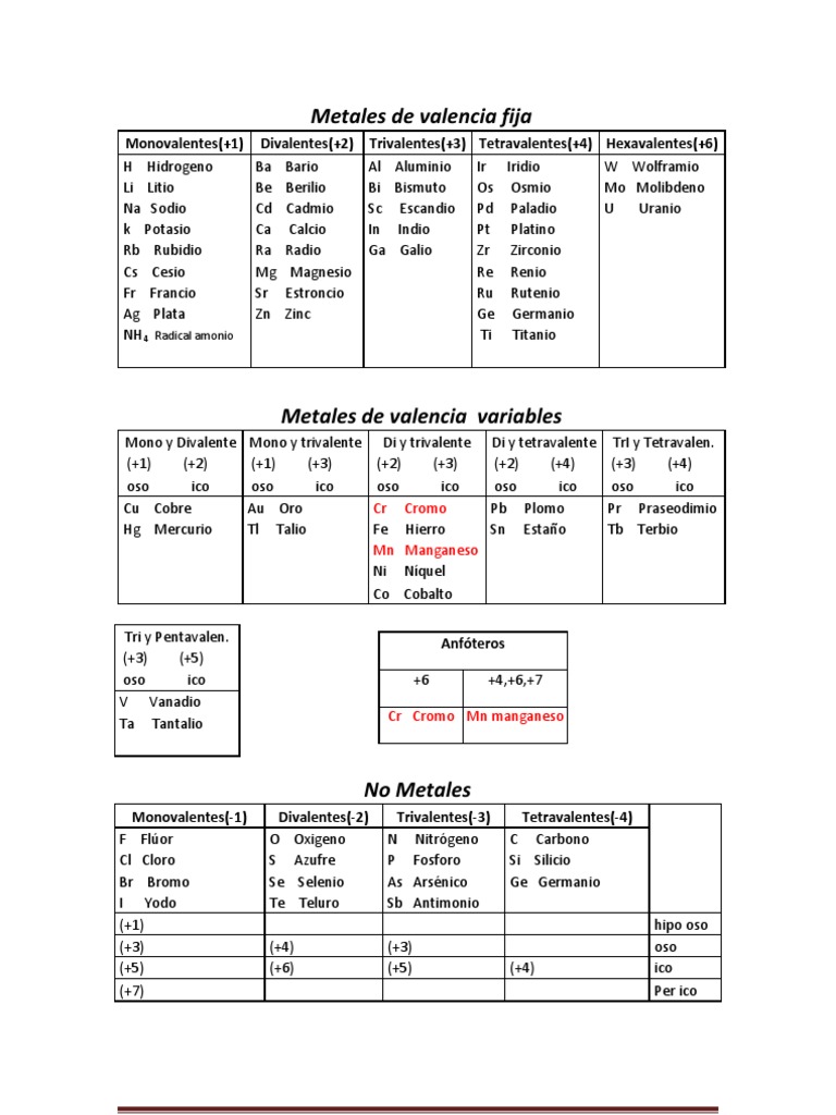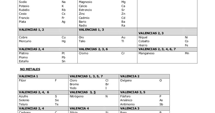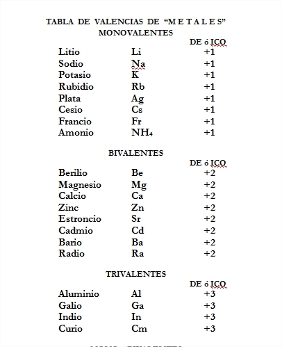 QUIMICA PARA TODOS : tabla de valencias de los metales y ... .