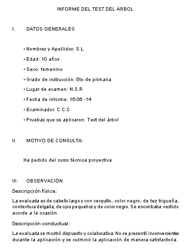 MODELO DE INFORME DEL TEST DEL ÁRBOL ~ Psicología .