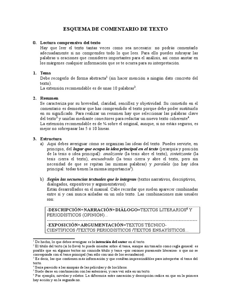 ESQUEMA DE COMENTARIO DE TEXTO PARA BACHILLERATO .